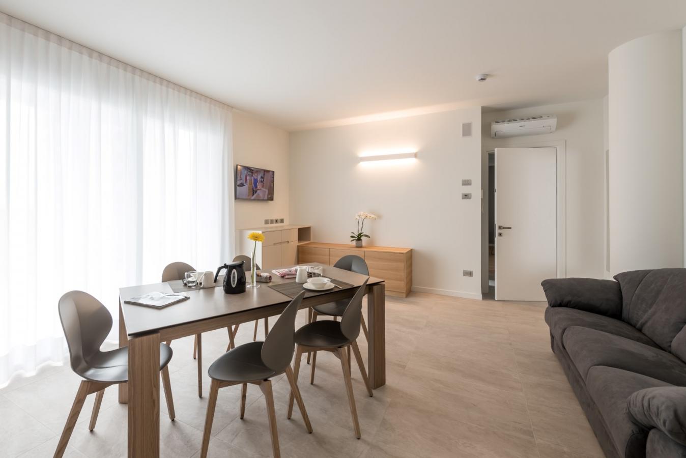 Owen and microwave SIEMENS, Induction burning SIEMENS, Washingmashine, Dishwasher SIEMENS, Clotheshorse, Fridge+ Freezer SIEMENS, Dishes Loves and Pentols, Detergents for appartments, hair dryer, digital safe deposit, Air-conditioning, Heating, Soundproofing, Energy-saving, Minibar, Private beach, Car-park in Via Monaco, Balcony with Solarium and swimmingpool,  LED lighting