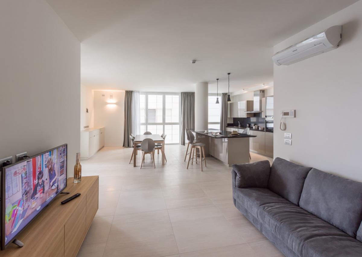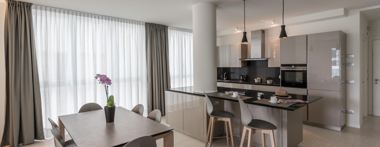 человекаКвартира находится на втором этаже, она состоит из большой гостиной с кухней-остров и большой столовый стол. В квартире есть две спальни с современной мебелью которые оборудованы всеми удобствами. Две ванные комнаты: одна для гостей, а вторая находится внутри спальни, есть также две большие террасы с видом на центр Езоло.
