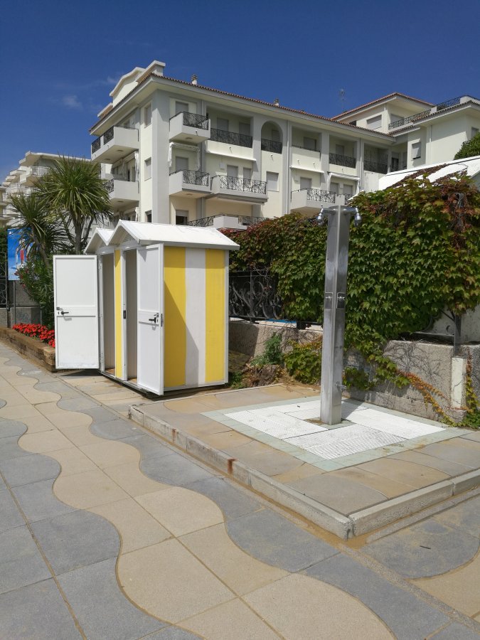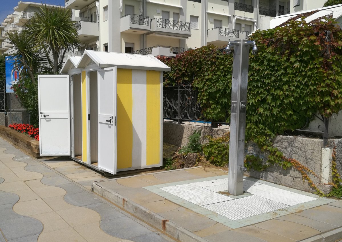 un servizio di animazione giornaliero, di cabine spogliatoio, docce, servizi WC e di un parco giochi per bambini.